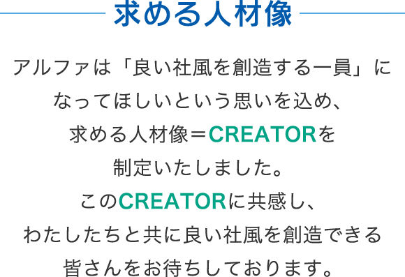 - 一体感をもってアルファの仲間と共に働けることを喜べる人材
